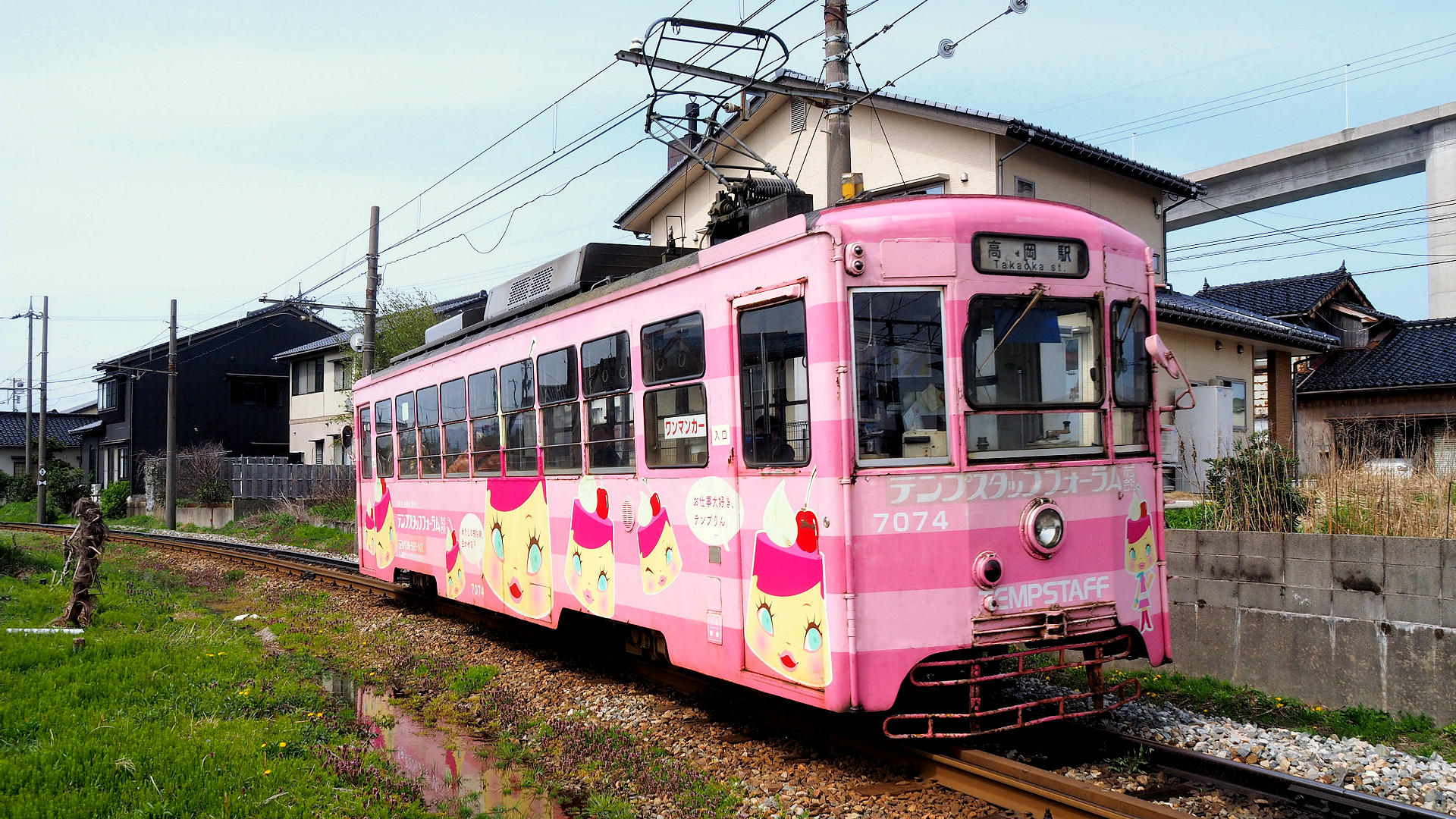 越ノ潟駅を発車した7074高岡駅行き 2024/04/04 撮影