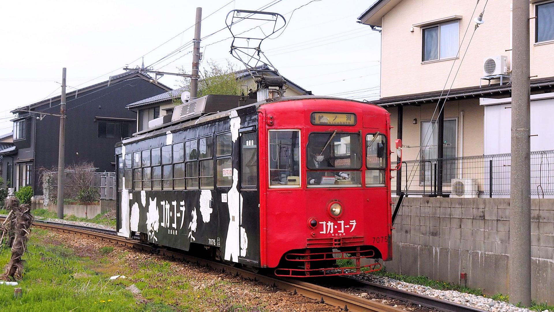 越ノ潟駅に到着する7075越ノ潟行き 2024/04/04 撮影