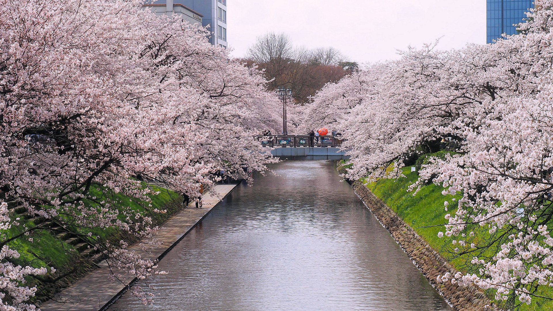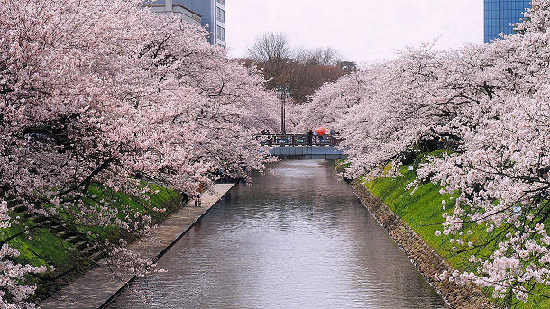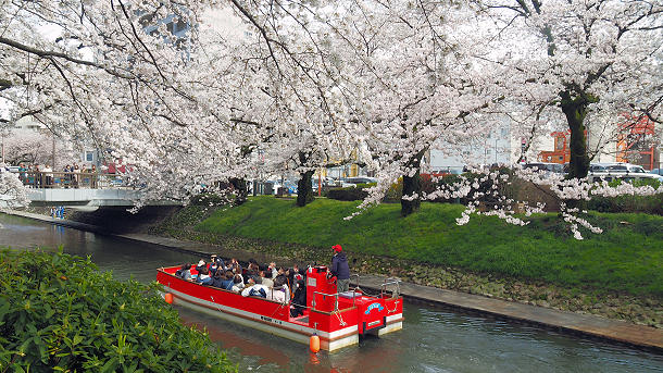 富山県内有数の桜の名所である富山市の松川べりの桜並木が、3月27日