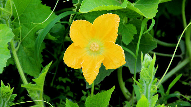 射水市手崎の手崎加茂社付近の畑に咲くカボチャ 2015/07/28 撮影