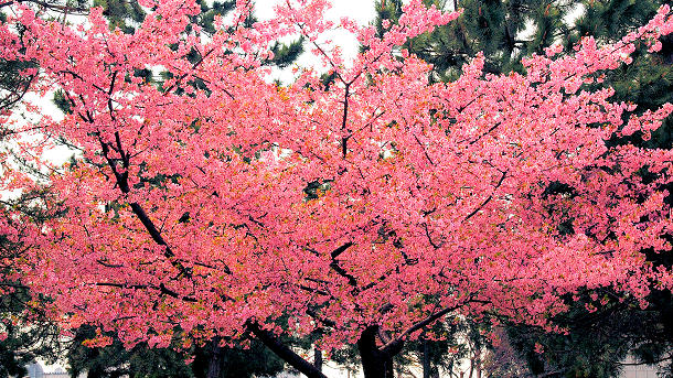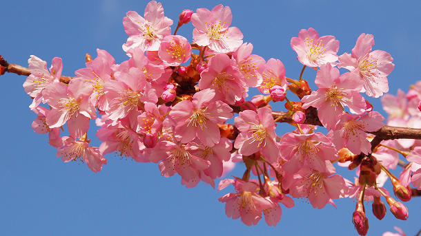 一足早く花見 富山の海岸通、カワヅザクラ満開