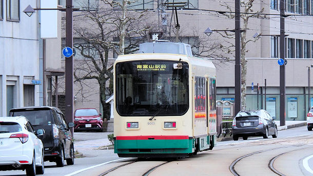 丸の内駅を発車した8001南富山駅前行き 2019/01/06 撮影