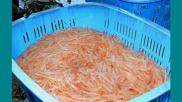 淡いピンク色のシロエビが運ばれると、港は活気づいた。