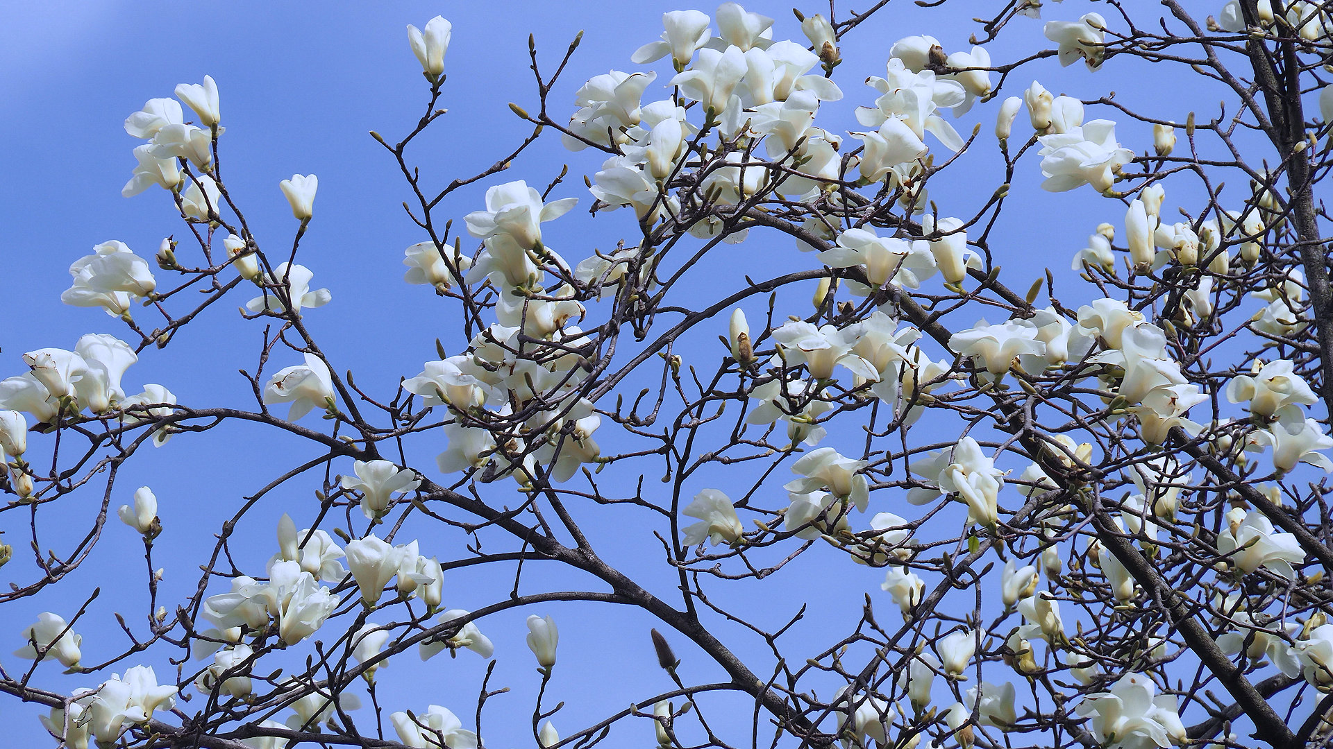 富山港線蓮町駅前にある馬場記念公園のコブシ 2025/03/29 撮影