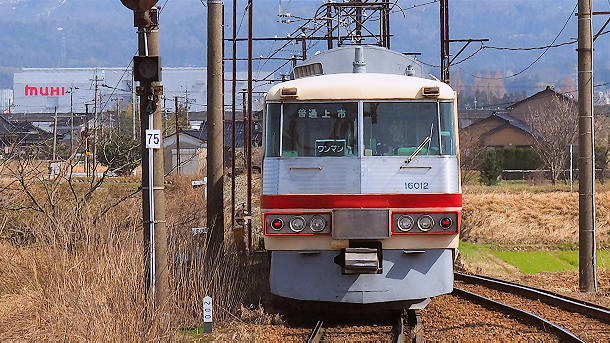 富山地方鉄道寺田駅から上市行き列車と池田模範堂本社工場