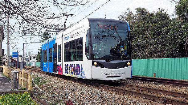 富山港線岩瀬浜駅を発車したT104南富山駅前行き 2025/03/29
