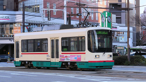 電鉄富山駅エスタ前駅を発車した8001富山駅行き 2019/02/17