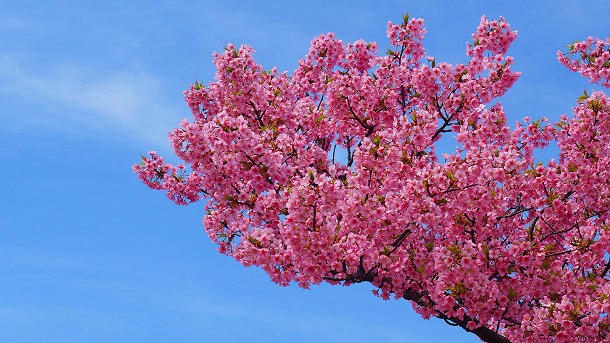 富山市 県道172号線(海岸通り)沿いの三菱ケミカルの河津桜