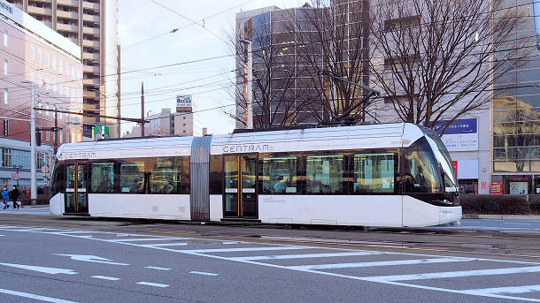電鉄富山駅エスタ前駅を発車した9001環状線 2019/02/17 撮影