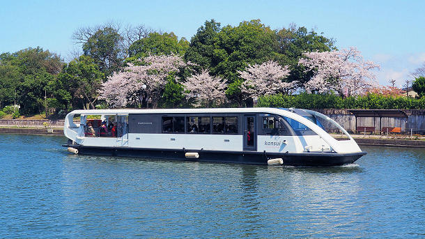中島公園付近を航行する遊覧船「kansui」