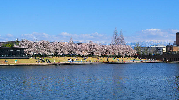 昨日、馬場記念公園公園から環水公園まで富岩運河沿いを桜を見ながら、