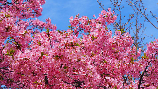 富山市 県道172号線(海岸通り)沿いの三菱ケミカルの河津桜