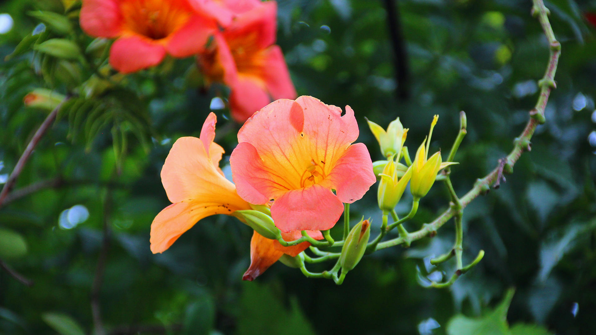あいの風とやま鉄道西高岡駅付近に咲くノウゼンカズラ