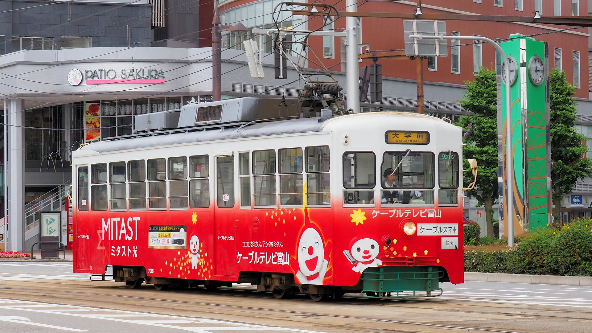 電鉄富山駅エスタ前駅を発車した7016大学前行き 2019/07/08