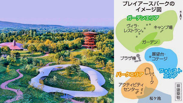 プレイアースパークの完成イメージ(CG画像)。手前はパーク、左奥が