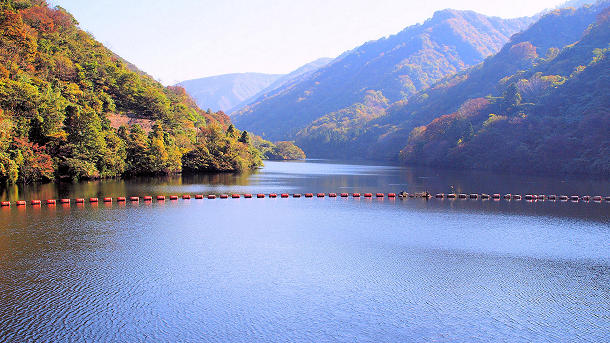 柏崎市が管理する上水道用の谷根ダム湖 堰堤から 2011/10/29 撮影