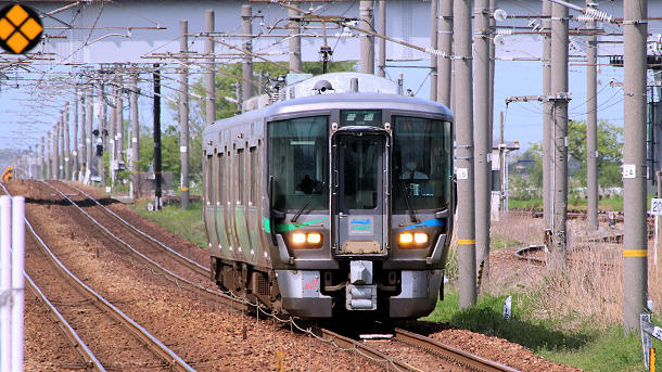 新富山口駅に到着する521系AK07編成富山行き 2024/04/28