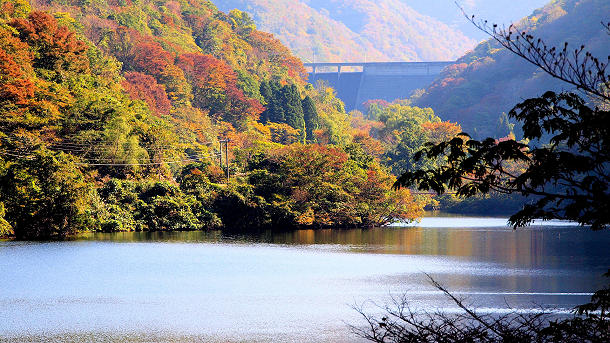 柏崎市が管理する上水道用の谷根ダム湖 堰堤から赤岩ダム堰堤