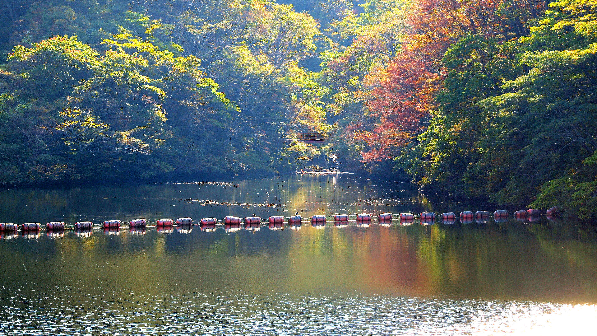 柏崎市が管理する上水道用の谷根ダム湖 右岸から左岸 2011/10/29