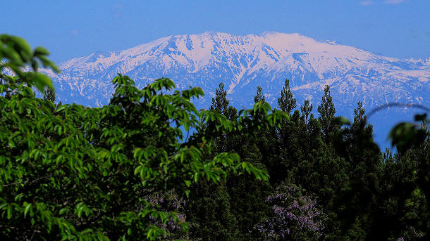 高岡市笹八口にある水道つつじ公園の配水タンク前から立山連峰薬師岳