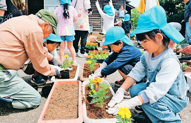 らに教わりながら、白や黄、赤色などのマリーゴールドやベゴニア、ペチュ