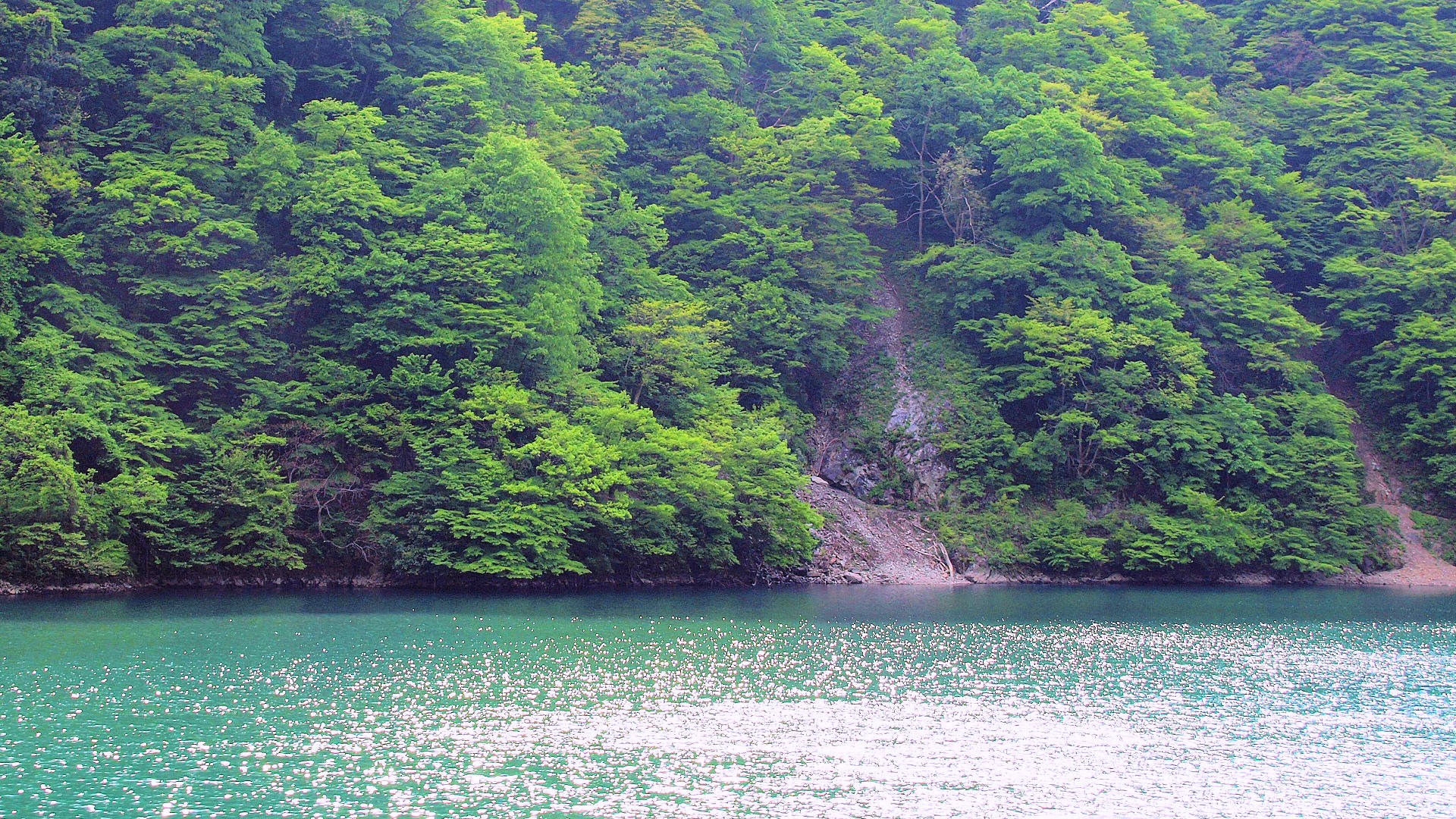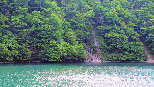 北陸電力が管理する発電用の新猪谷ダム湖 国道41号線から