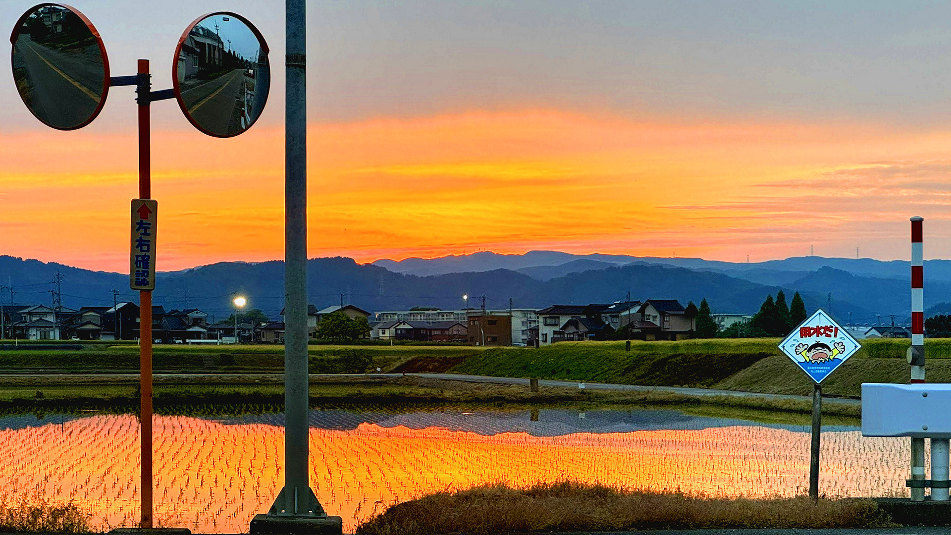 高岡市蔵野町の県道252号線から宝達山系側の夕焼け 2025/05/15
