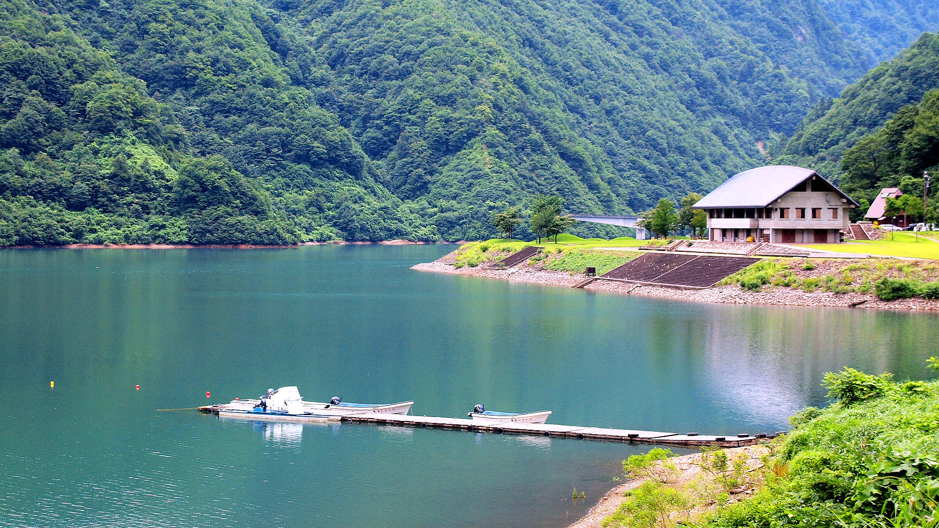 南砺市上平地域の桂湖の湖面開きは6月6日湖畔の桂湖ビジターセンター