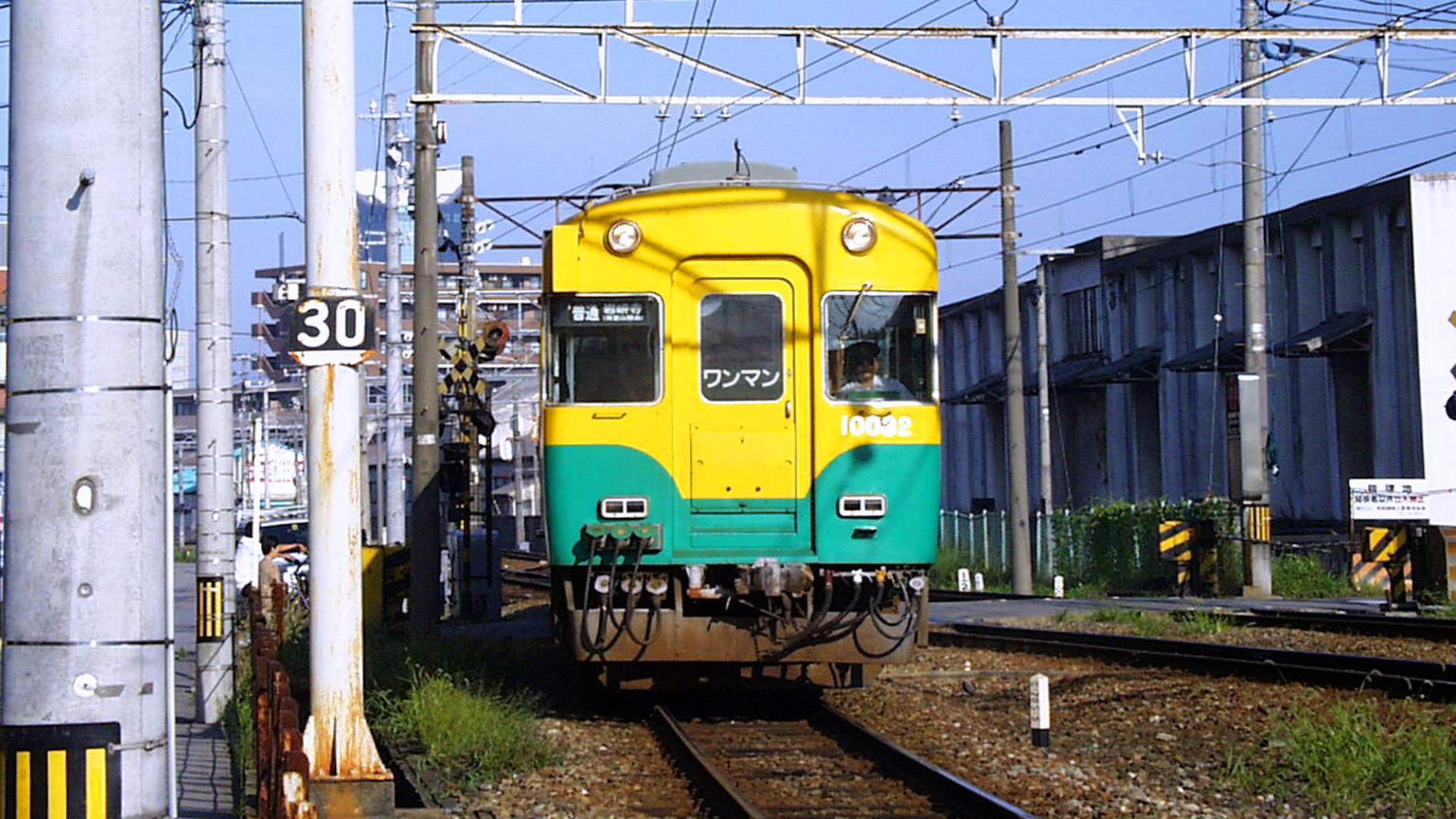 不二越線稲荷町駅に到着する10032+10031岩峅寺行き 1998/09/05 撮影
