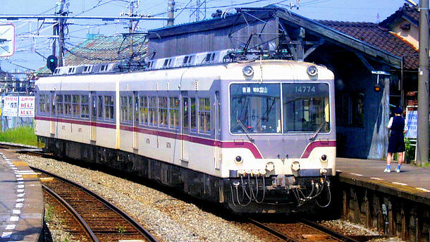 立山線寺田駅に停車中の14774+14773電鉄富山行き 1998/09/12 撮影
