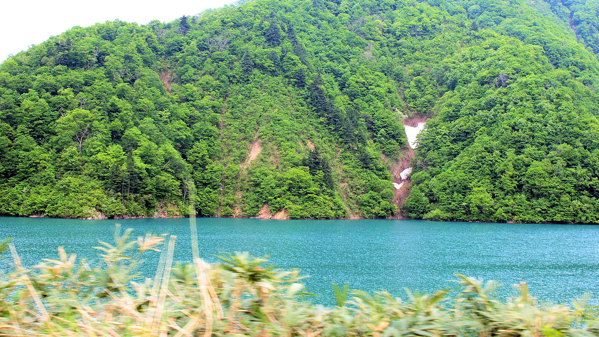 中流部を走行中の車から右岸