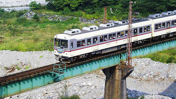 立山線真川橋梁を渡る14773+14734特急アルペン1号宇奈月温泉行き