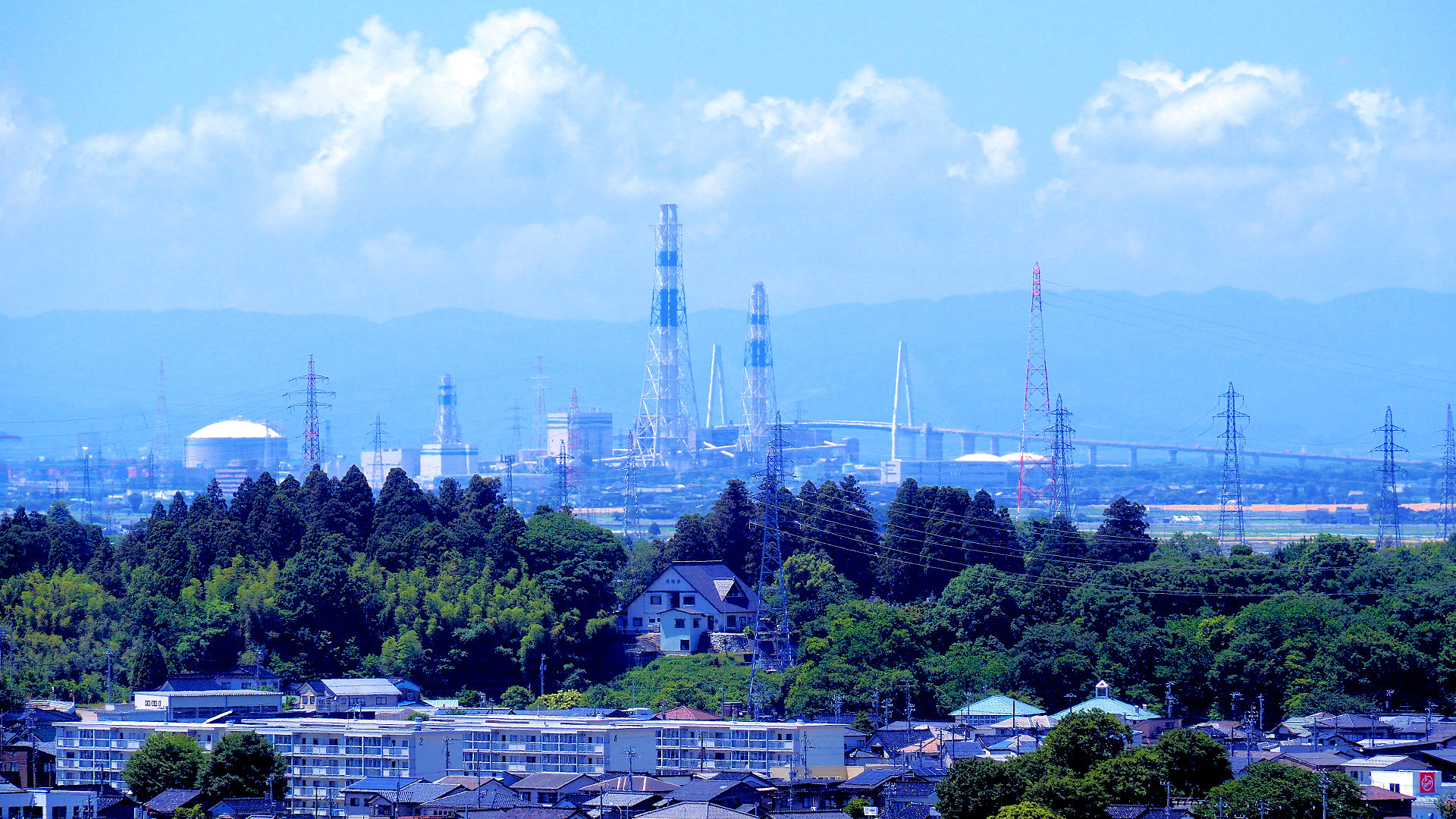 富山市牛島町のアーバンプレイス14階から射水市の富山新港火力発電所と