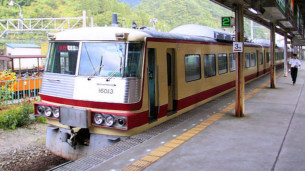 本線宇奈月温泉駅に到着した16013+16014+112立山発特急アルペン3号