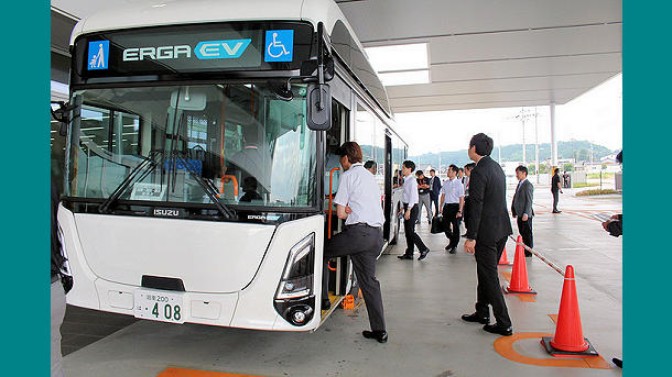 同社によると、EVのフルノンステップバスはいすゞ自動車が国内で初め
