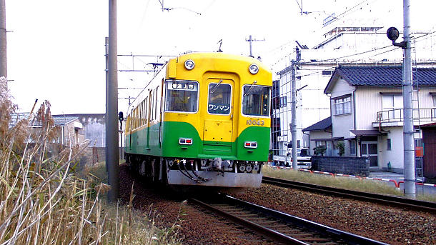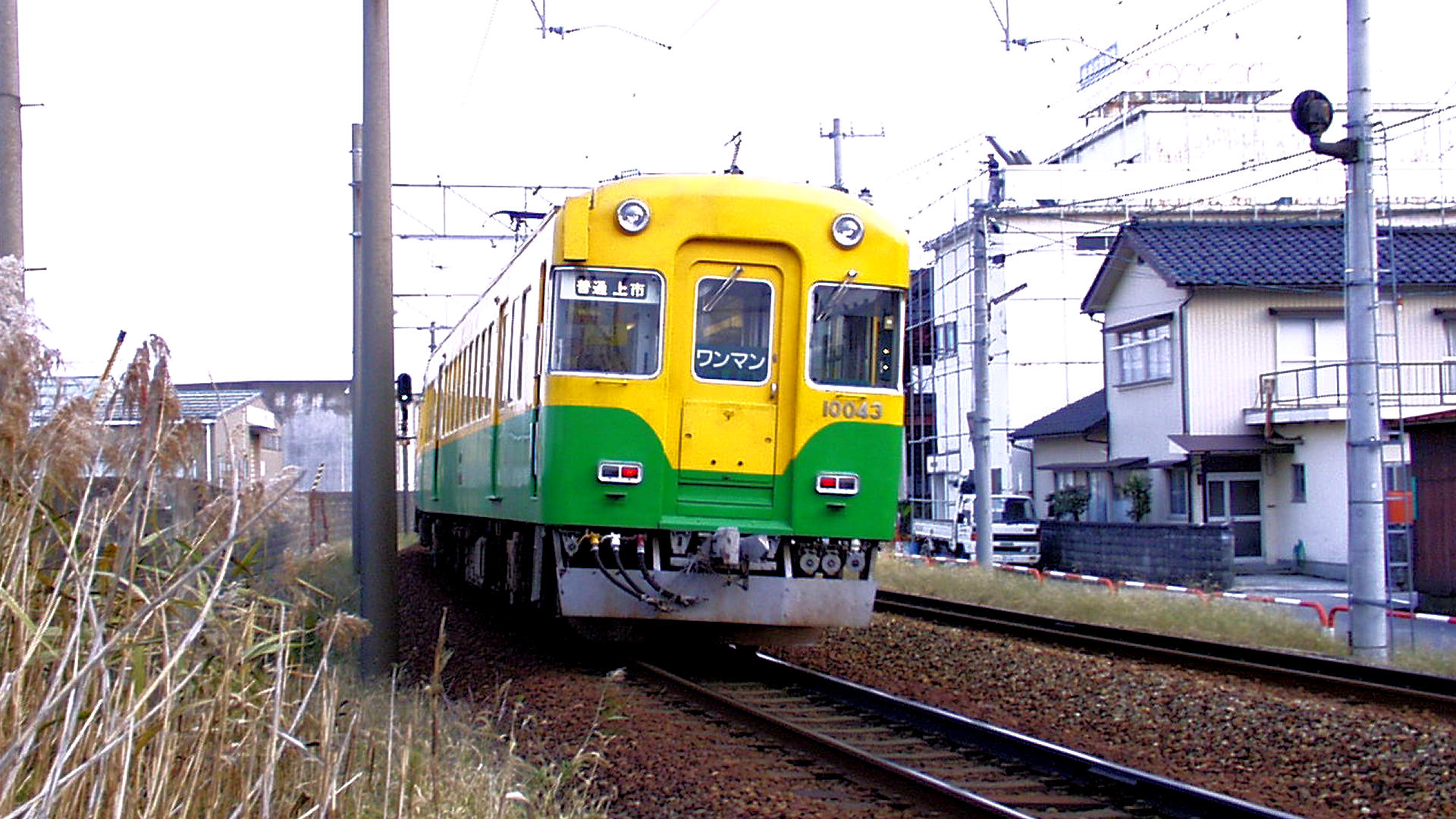 本線電鉄富山駅−稲荷町駅間を走る10043+10044上市 1998/11/14 撮影