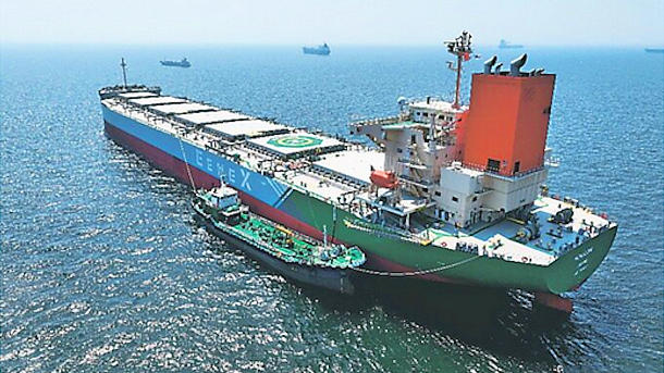 韓国でバイオ燃料の供給を受ける石炭輸送船