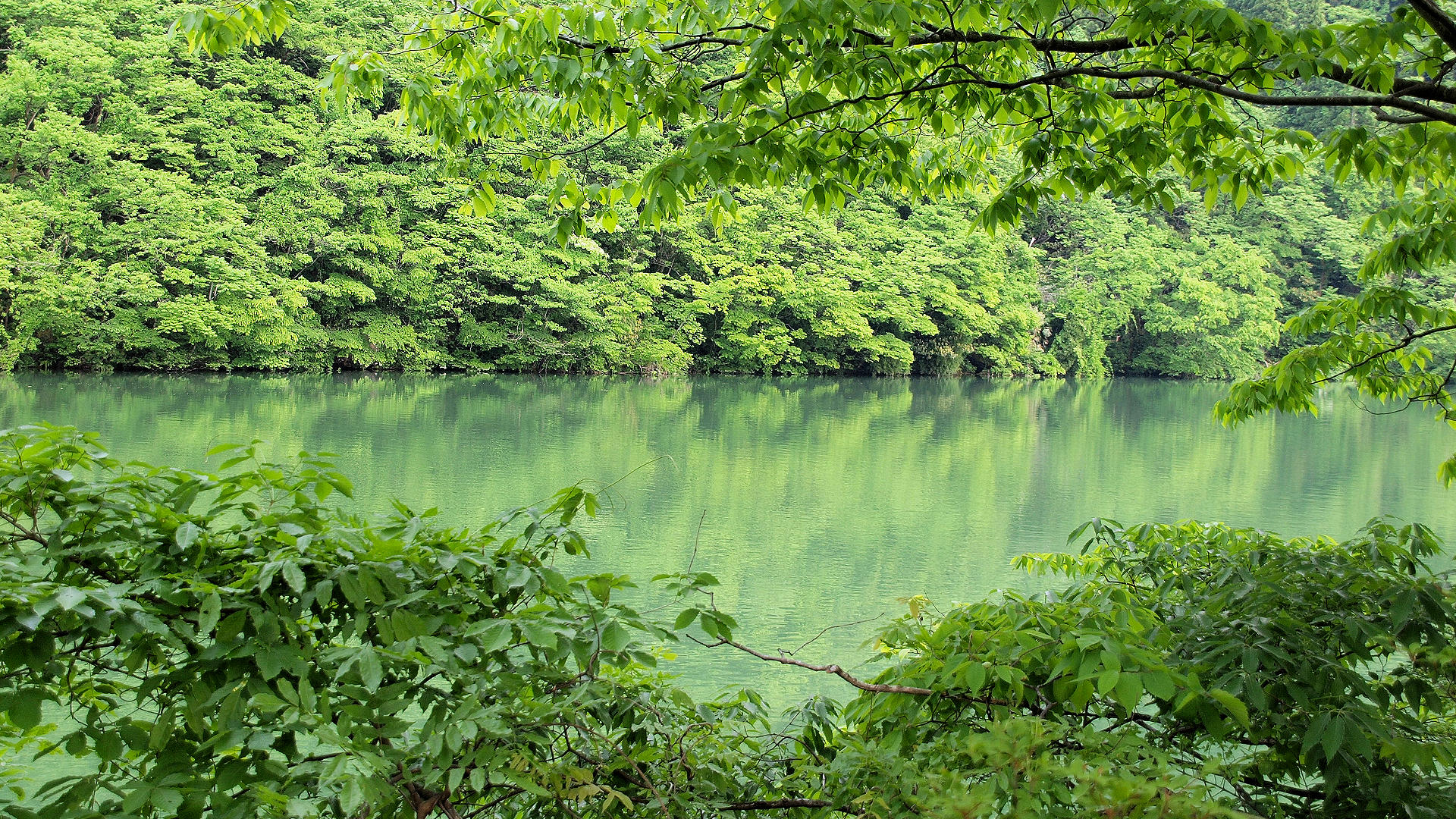 砺波市庄川町金屋にある庄川用水合口ダム湖 庄川水記念公園から右岸