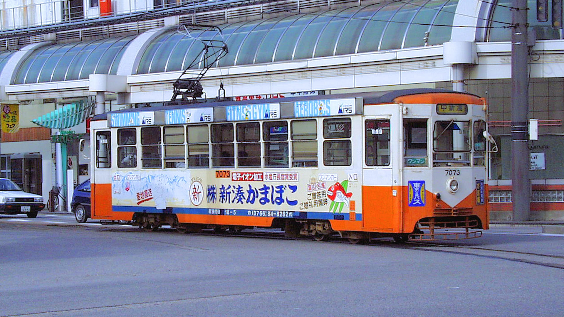 万葉線高岡駅前駅を発車した7073中新湊行き 1998/10/03 撮影