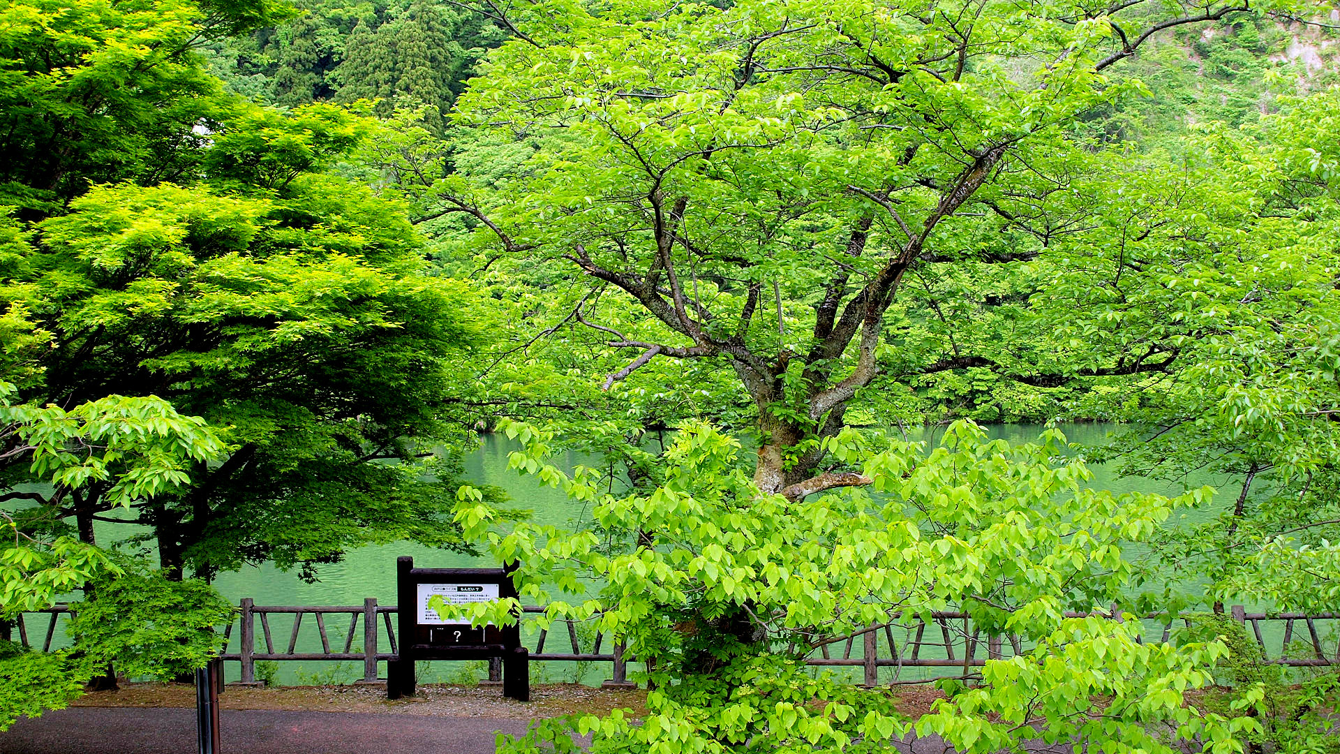 砺波市庄川町金屋にある庄川用水合口ダム湖 庄川水記念公園の上流部
