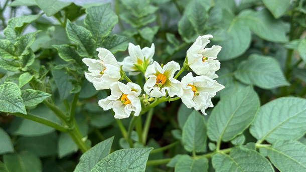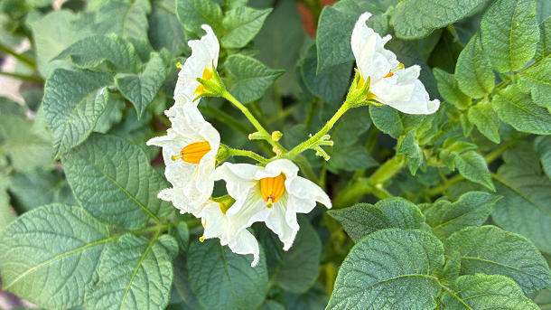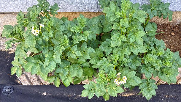 芽が出て伸びたジャガイモを鉢の受け皿に入れていたら