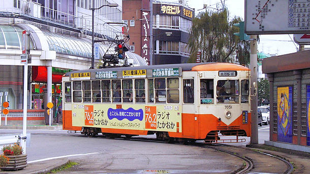 高岡駅前駅に到着する7051高岡駅前行き 1998/10/31 撮影