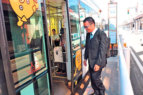 に路面電車を使い、市長専用公用車の「廃止」を打ち出した。夕方には能登