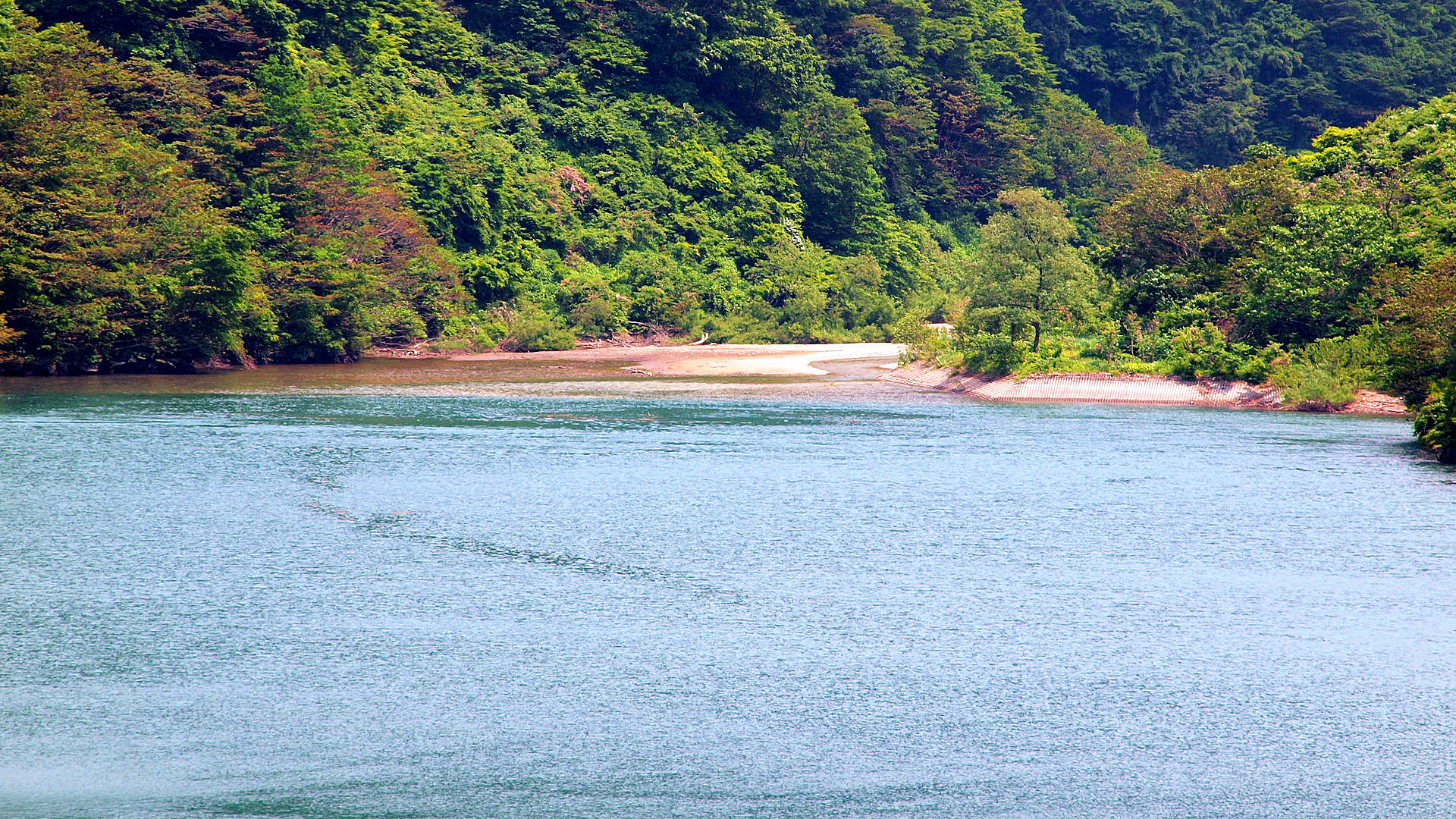 富山県営朝日小川ダム湖 堰堤天端からダム湖最上流部 2012/06/03 撮影