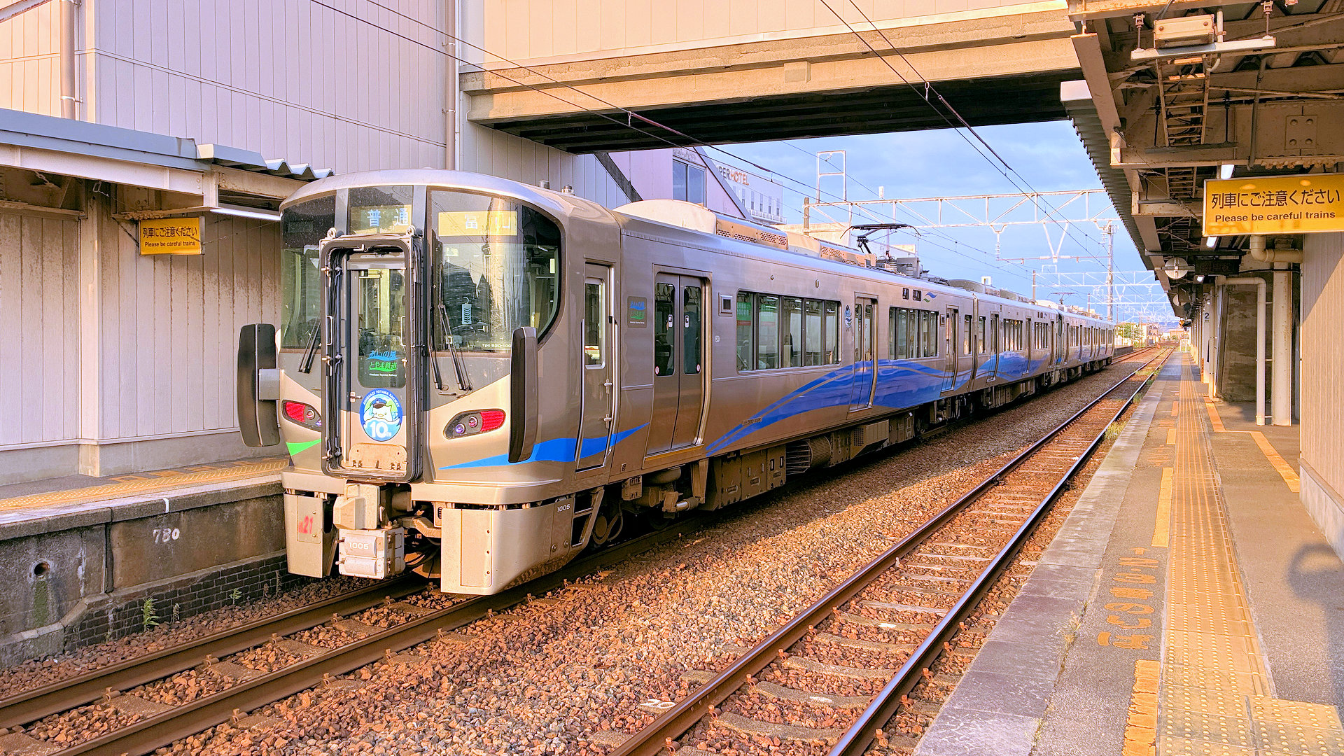 あいの風とやま鉄道小杉駅に到着する521系AK21+AK22編成富山行き