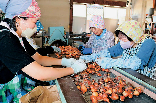 チューリップ球根の出荷が最盛期に入った。朝日町で唯一の生産農家「チ