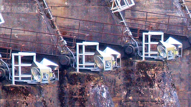 17門あるラジアルゲートに2基ずつ34基の点検用ライトを設置