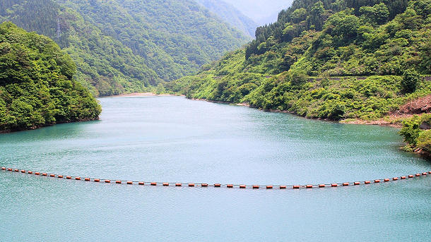 富山県営朝日小川ダム湖 堰堤天端からダム湖上流側 2012/06/03 撮影