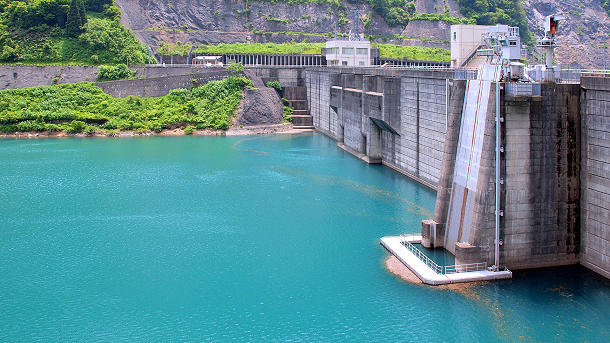 富山県営朝日小川ダム湖 右岸から堰堤 2012/06/03 撮影