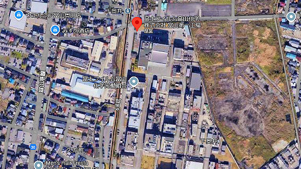 富士フイルム富山化学が富山第一工場 画像:GoogleMapから
